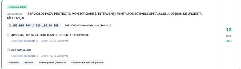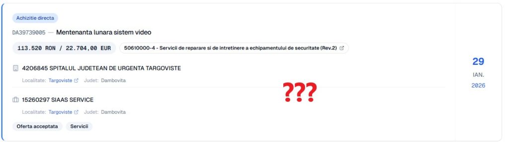 Tot la SJUT mai există, pentru 2026, un contract pentru servicii de pază și protecție, în valoare de, atenție iar!, peste 630.000 de euro. Un contract doar pentru anul 2026, evident. Dată fiind valoarea acestuia, momentan cel puțin, orice alt comentariu am considerat a fi de prisos