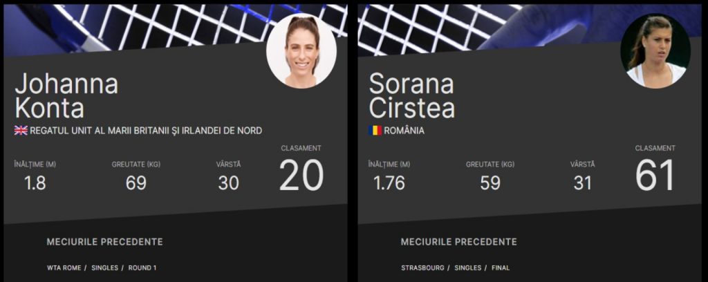 În 2021, Sorana Cîrstea (n.m. nr.53 WTA, a fost 61 WTA, până luni 31 mai) debutează la turneul de Mare Slem de la Roland Garros, în compania britanicei Johanna Konta (nr.20 WTA). Meciul va avea loc în data de 1 iunie, începând cu ora 11.00. Turneul parizian de Mare Slem debutează în data de 30 mai și încă din prima zi de competiție 2 românce vor intra în competitie. Ana Bogdan și Patrcia Țig vor juca în meciurile din primul tur de pe tablou de simplu feminin.