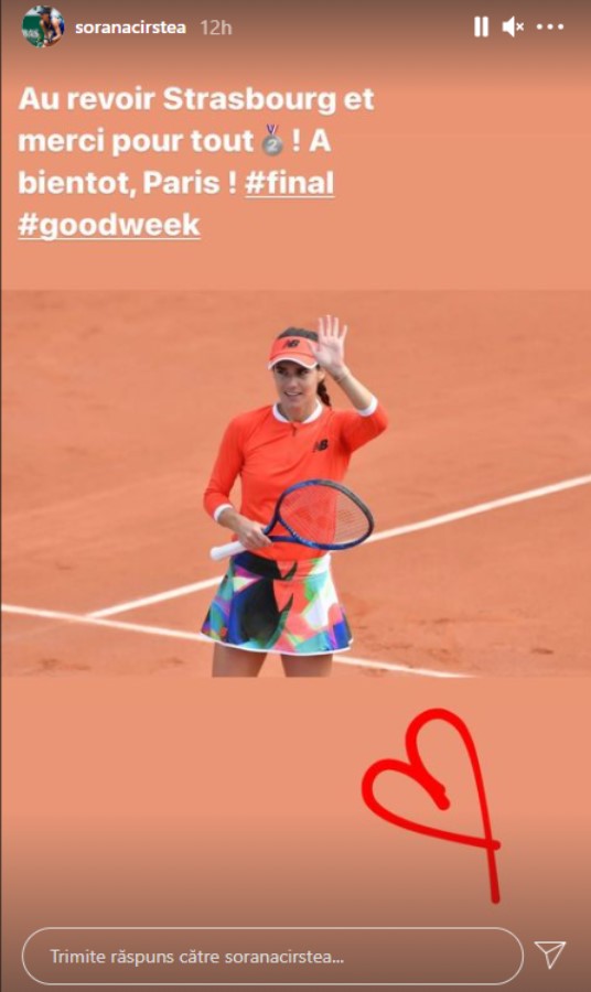 „A fost o săptămână frumoasă, dar astăzi adversara mea a fost mai bună. Merită trofeul! Sunt mulțumită cu această performanță, cu modul în care am jucat. Vreau să muțumesc tuturor organizatorilor pentru că au făcut posibil acest turneu”, a spus Sorana, după care a transmis și un mesaj în limba franceză: „Vorbesc puțin franceză! Sunt foarte bucuroasă că am putut juca la Strasbourg! Le mulțumesc tuturor pentru eforturile de a organiza acest turneu. Mă vedeți în curând la Paris!”,