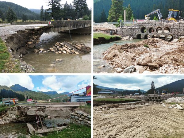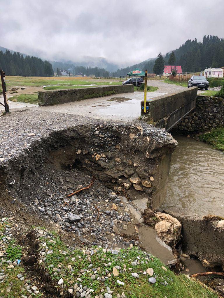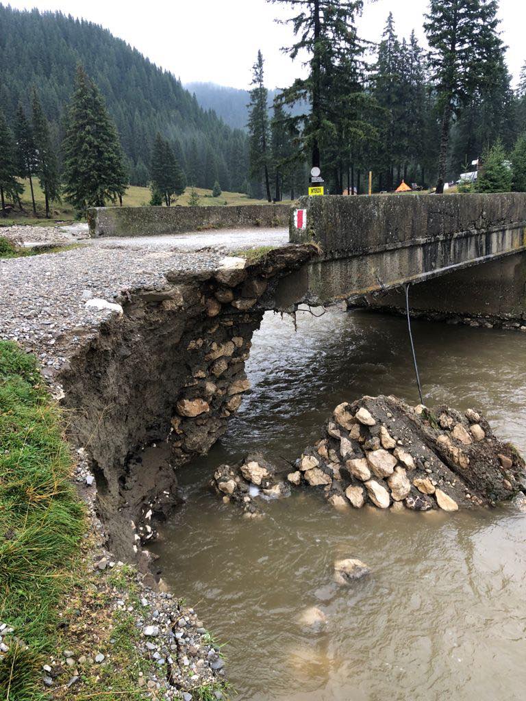 Mai multe poduri din stațiunea montană dâmbovițeană au fost afectate, în 2021, în zona DJ 714. Ulterior, s-a decis chiar demolarea unui pod și refacerea temporară a acestuia. Temporar, temporar, dar cam ilegal, pentru că reconstrucția s-a făcut fără avize de construire, adică noua construcție, cea provizorie se spunea, punea în pericol atât pe cei care o foloseau cât și zona, în cazul unei noi calamități.