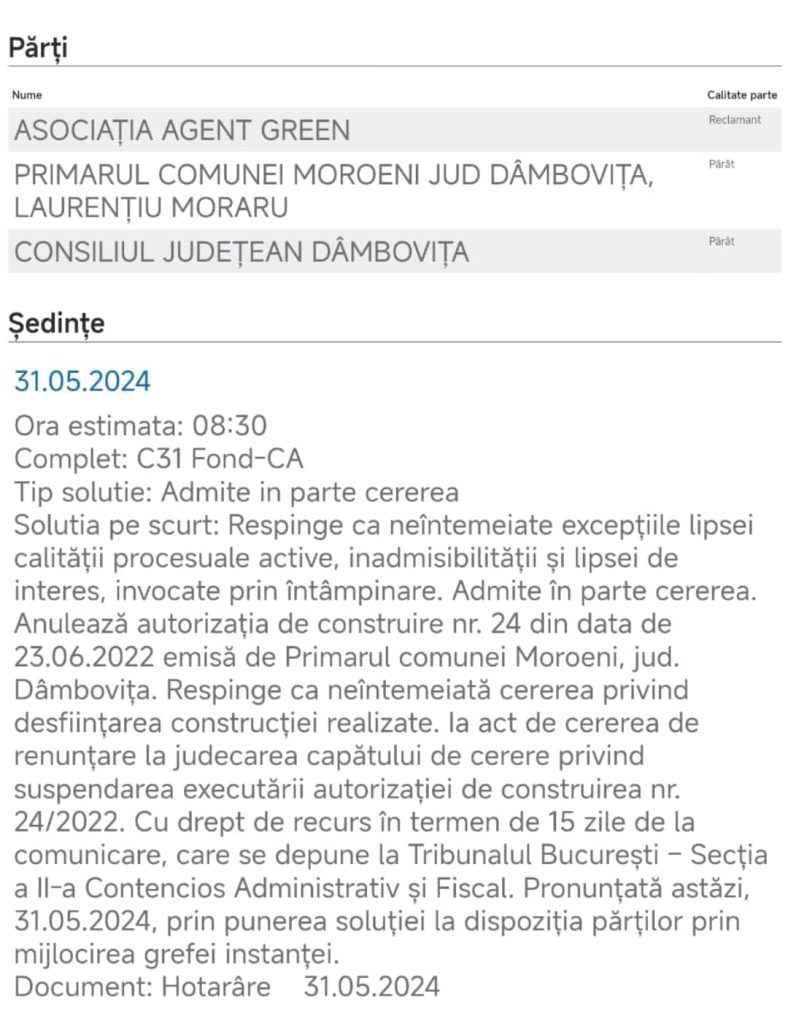 Foto: Captură hotărâre Tribunalul București (31 mai 2024)