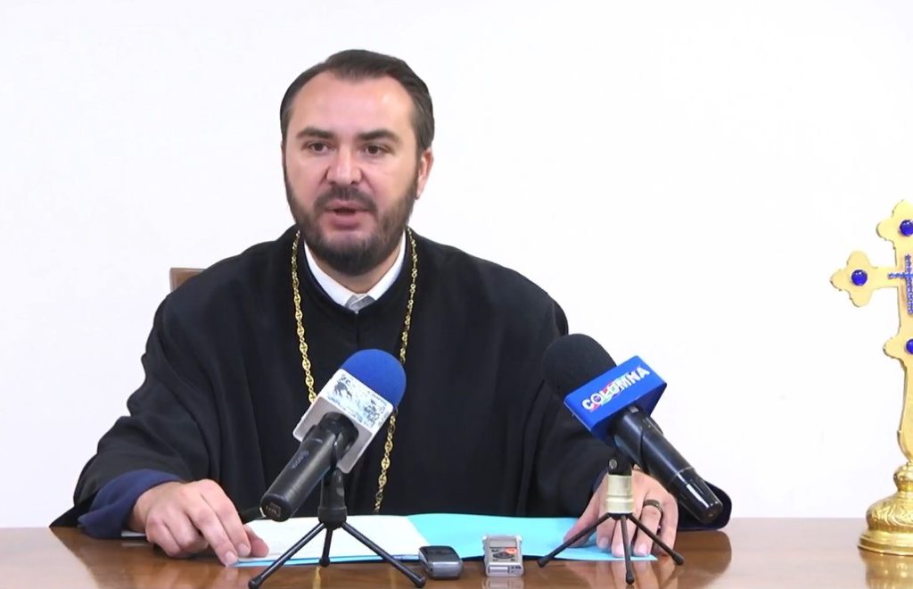 Foto: Ionuț Ghibanu, vicar eparhial, Arhiepiscopia Târgoviștei (conferință de presă, 08.08.2025, la Târgoviște)