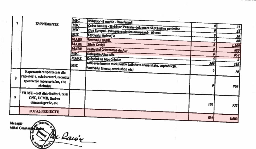 Foto: Fonduri evenimente organizate de Teatrul “Tony Bulandra”, în anul 2025 (sume alocate prin buget, care pot deveni chiar mai mari, prin suplimentări ulterioare)