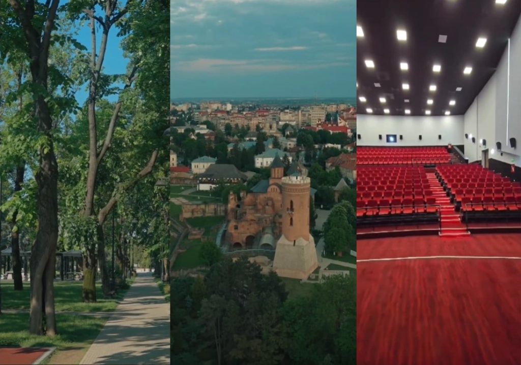 Foto: Colaj realizat cu fragmente din videoclip publicat pe pagina de facebook Daniel Cristian Stan. Postare despre fonduri europene atrase, la Târgoviște, ce este ilustrată și cu proiecte implementate cu alte fonduri, precum cele de la cinematograful “Independența” (fonduri CNI) sau Parcul Mitropoliei (fonduri proprii, locale, împrumut bancar, de fapt)