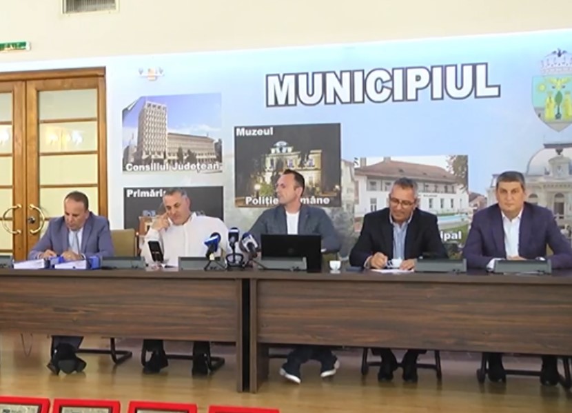 Foto: Ședință CLM Târgoviște, 16 septembrie 2025, în centrul imaginiii primarul Târgoviștei, Cristian Stan, și viceprimarul Cătălin Rădulescu, ambii de la PSD, într-o discuție despre subiectul zilei, alocarea cu “cântec” către Chindia.
