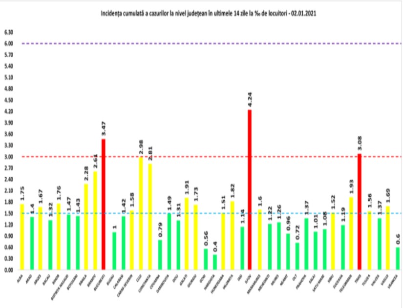 Primele zile din 2021 (așa după cum era de așteptat, conform procedurilor de până acum) au adus un număr redus de testări, pentru depistarea noului coronavirus. În aceste condiții, ratele de incidență au scăzut dramatic în toată țară, iar rezultatul se va vedea și în ceea ce privește restricțiile impuse la nivelul fiecărui județ în parte.