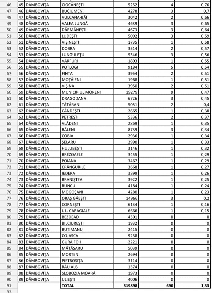 Tot în ultimele 24 de ore au fost raportate alte 53 de decese (niciunul în Dâmbovița). La ATI, în momentul de față, sunt internați 1022 de pacienți, număr în creștere față de zilele precedente.